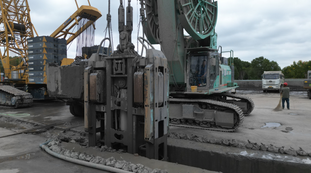 在此背景下金泰抓斗憑借其先進的液壓驅動系統、精準的糾偏控制技術和高效的成槽能力,成為項目施工的首選設備。該項目槽寬1.2米,槽深61米,總計280幅槽,目前完成已完成100幅。平均10小時可完成一幅。項目施工團隊對金泰抓斗的表現給予了高度評價。項目部經理表示:“經過過往的多個案例反復驗證,金泰抓斗在復雜地質條件下的穩定性和高效性令人印象深刻,其精準的成槽垂直度和強大的成槽能力,有效保障了施工進度和質量安全,為項目順利推進提供了堅實保障。”